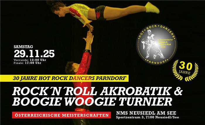 Die HOT ROCK DANCERS-Parndorf feiern 30 Jahre Vereinsbestehen und veranstalten zu diesem Anlass die Österreichischen Meisterschaften der Paare und Miniformationen Rock 'n' Roll Akrobatik.