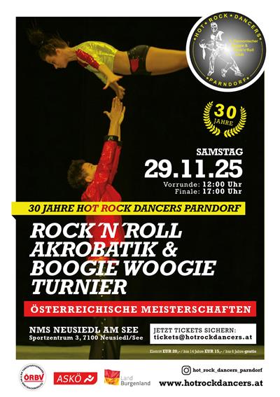 Die HOT ROCK DANCERS-Parndorf feiern 30 Jahre Vereinsbestehen und veranstalten zu diesem Anlass die Österreichischen Meisterschaften der Paare und Miniformationen Rock 'n' Roll Akrobatik.